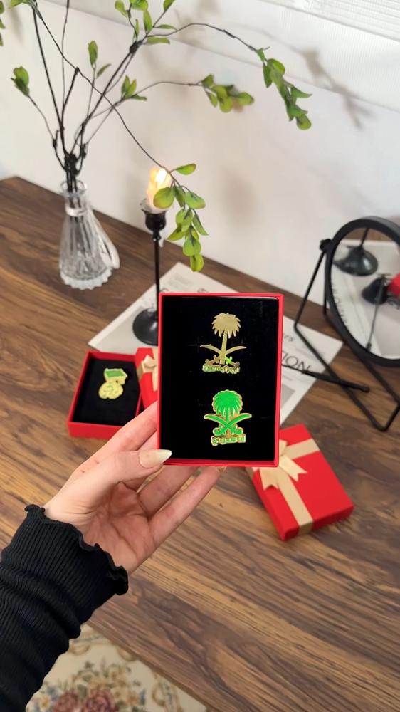 أضف لمسة فاخرة لأيامنا الوطنية مع هذا البروش الرائع على شكل سيفين ونخلة، متوفر بالذهب أو الفضة. تصميم أنيق يبرز حبك للمملكة ويكمل إطلالتك في اليوم الوطني والمناسبات الخاصة. قطعة تبرز الذوق والاعتزاز بالوطن في كل مناسبة.