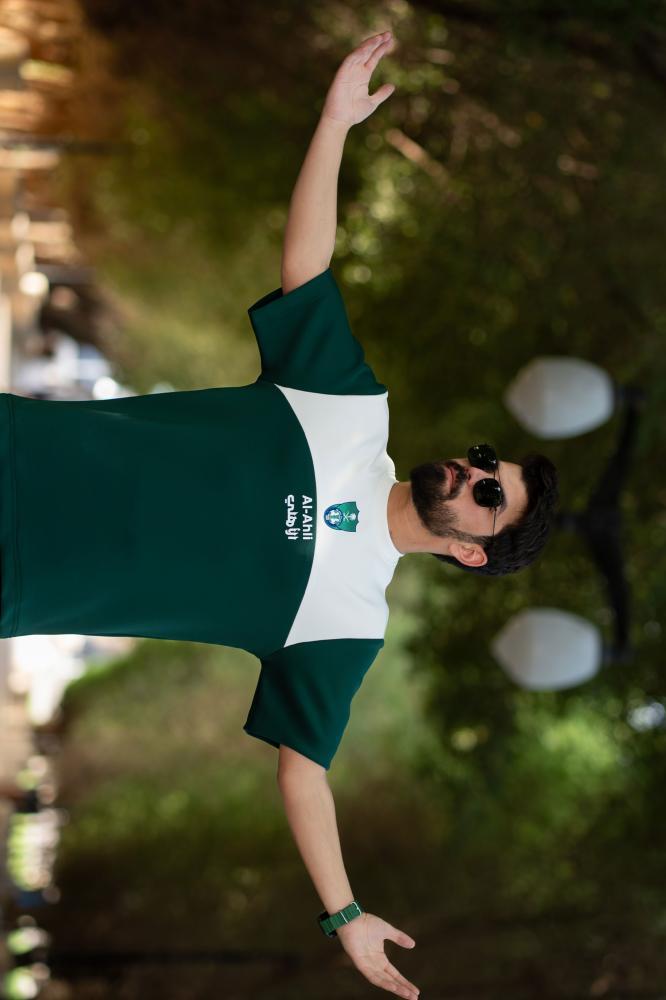 تيشيرت نادي الأهلي يتميز بتصميم أنيق وعصري يعكس روح الفريق العريق والانتماء الرياضي بكل فخر. يأتي بلون أخضر جذاب بإنحناء مائل أبيض على الصدر يحمل شعار النادي ” بطباعة واضحة وأنيقة.